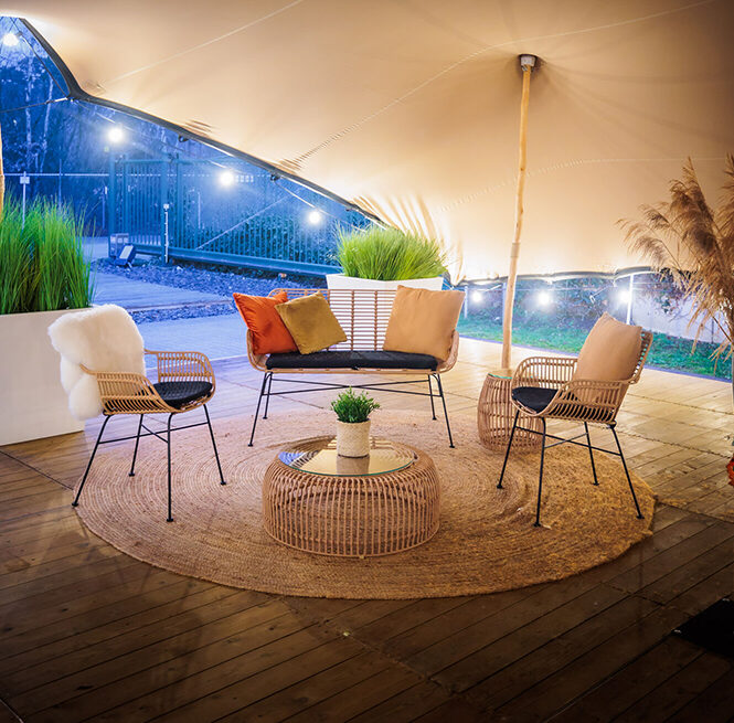 Een tropische vibe creëren op uw event? Onze Palm loungeset doet het werk! Deze elegante Palm Set Lounge bestaat uit een loungebank met kussen, twee comfortabele armstoelen met kussens, een salontafel met verhard glas en een bijzettafeltje dat ook dienst kan doen als poef. Of u nu een exotische beachbar setting creëert of een bohemian wedding styled inricht, deze tropische loungeset past zich moeiteloos aan aan elke sfeer. Combineer met bijpassende palm poefen en tafels voor een harmonieuze look die uw gasten niet snel zullen vergeten.De elementen van de Palm Set kunnen ook afzonderlijk gehuurd worden. Is dit niet de loungebank die u zocht? Neem dan zeker een kijkje bij ons ander loungemeubilair en laat je inspireren door onze sfeerfoto’s op de website van Het Feestkasteel.